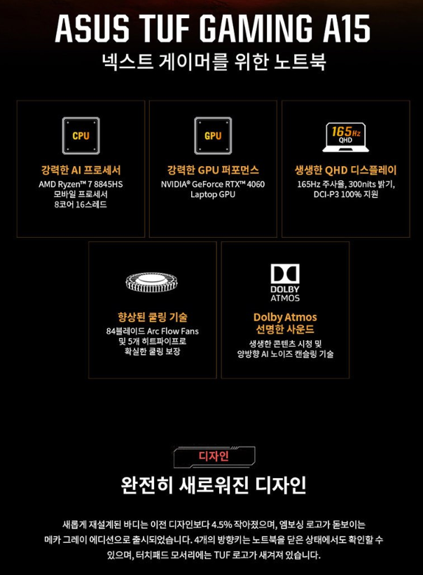에이수스 2024 TUF GAMING A15 라이젠7 라이젠 8000 시리즈 지포스 RTX 4060 바로가기