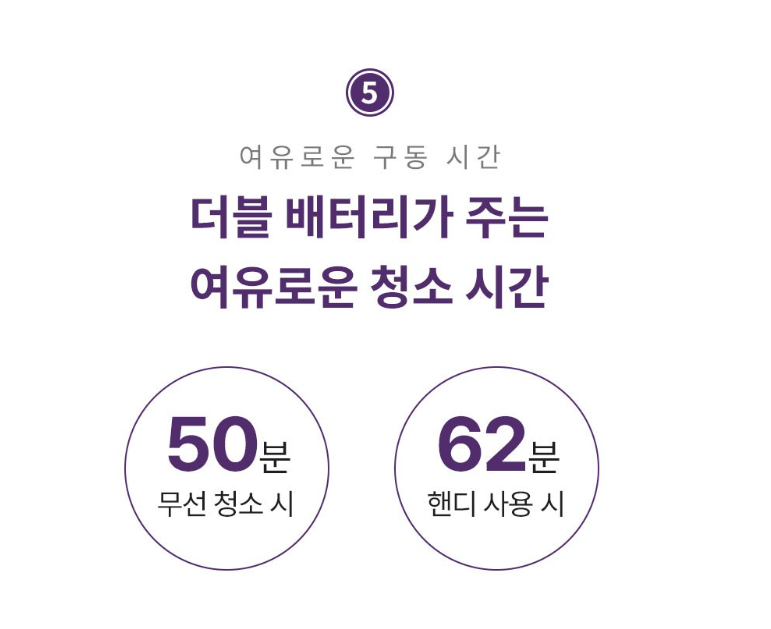 - 총 80분 이상의 청소 시간 확보 가능