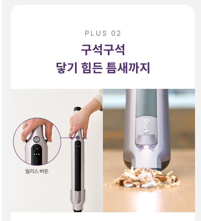 ✅ 가벼운 무게: 기존 샤크 제품보다 경량화된 본체(약 3.1kg)로 손목 부담이 적다.