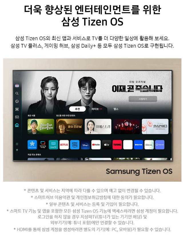 삼성은 환경 보호를 위해 노력하고 있으며, 이 TV도 에너지 효율이 높고, 재활용 가능한 소재를 사용하고 있습니다. 이는 환경적 지속 가능성을 고려한 제품 선택에 중요한 요소가 될 수 있습니다.