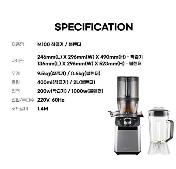 휴롬 2in1 착즙기 블렌더 M100-SBFA05 바로가기