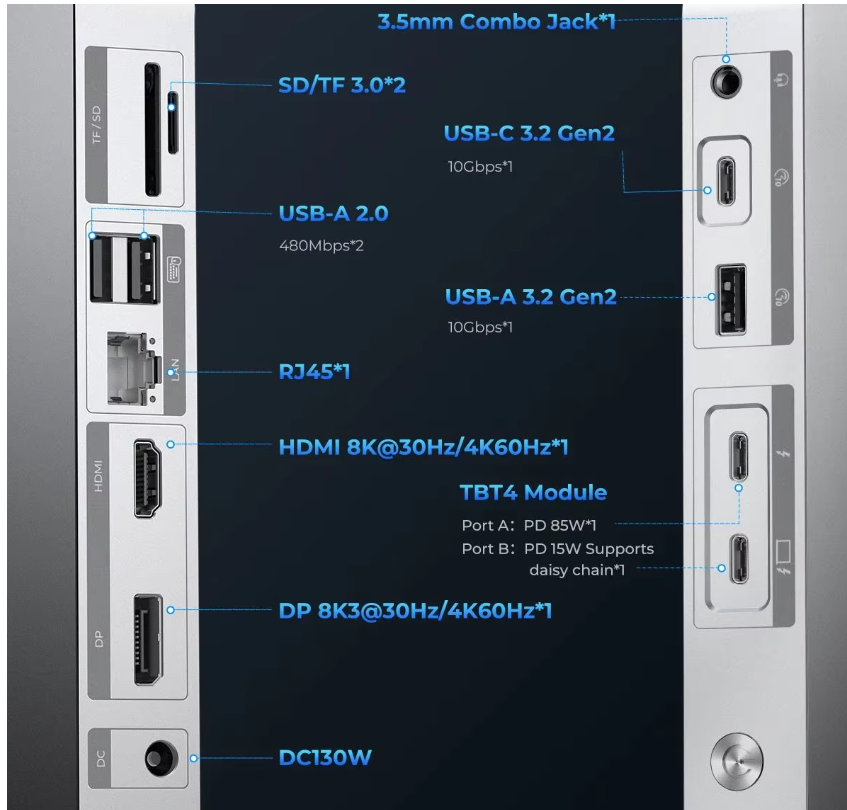 ORICO의 선더볼트 4 도킹 스테이션은 첨단 연결성과 고성능 데이터 전송 기능을 갖춘 최신 기술 제품입니다. 이 도킹 스테이션은 다양한 포트와 호환성을 제공하여, 특히 맥북 사용자와 윈도우 PC 사용자 모두에게 필수적인 작업 공간 확장 솔루션을 제공합니다.