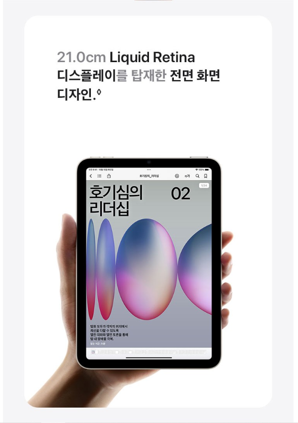 2024년형 아이패드 mini의 스페이스 그레이 모델은 세련된 외관과 함께 뛰어난 휴대성을 자랑합니다. 8.3인치의 작은 크기로 어디서든 가볍게 들고 다닐 수 있으며, 알루미늄 바디는 견고함을 더하면서도 현대적인 느낌을 줍니다. 이 제품은 직장인, 학생 또는 여행을 자주 가는 사용자에게 이상적인 선택입니다.