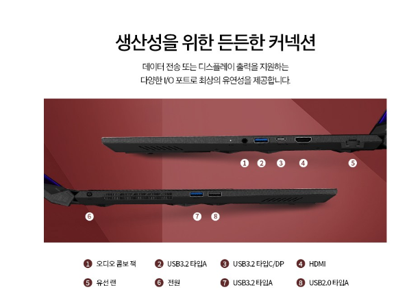 다양한 연결 옵션을 제공하는 이 노트북은 여러 개의 USB 3.2 포트, HDMI, Ethernet, 그리고 오디오 잭을 갖추고 있어, 여러 주변 장치를 손쉽게 연결할 수 있습니다. 최신 Wi-Fi 6와 Bluetooth 5.1을 지원하여 더욱 빠르고 안정적인 무선 연결이 가능합니다.