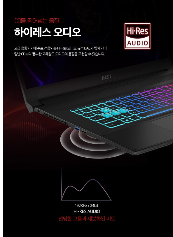 나히믹 오디오 기술을 탑재한 MSI SWORD GF76은 강력한 사운드와 뛰어난 몰입감을 제공합니다. 이는 게이머가 게임 내의 세부 사운드를 놓치지 않도록 도와주며, 더욱 실감나는 게임 경험을 제공합니다. 또한, 키보드는 전문 게이머를 위해 설계되었으며, 각 키는 적절한 반응성과 편안한 타이핑 경험을 제공합니다.