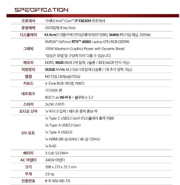 MSI 2023 SWORD GF76 게이밍 노트북 리뷰: 17.3인치 코어 i7 인텔 13세대 바로가기