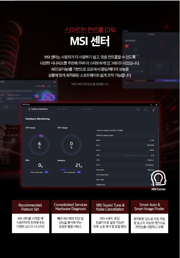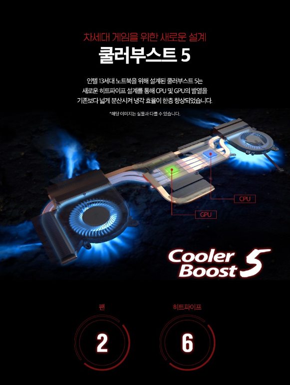 MSI의 전용 쿨러 부스트 기술은 6개의 히트 파이프를 통해 열을 효과적으로 분산시킵니다. 이 시스템은 고사양 게임을 장시간 플레이하더라도 노트북이 안정적인 온도를 유지할 수 있도록 도와주며, 소음도 최소화합니다.