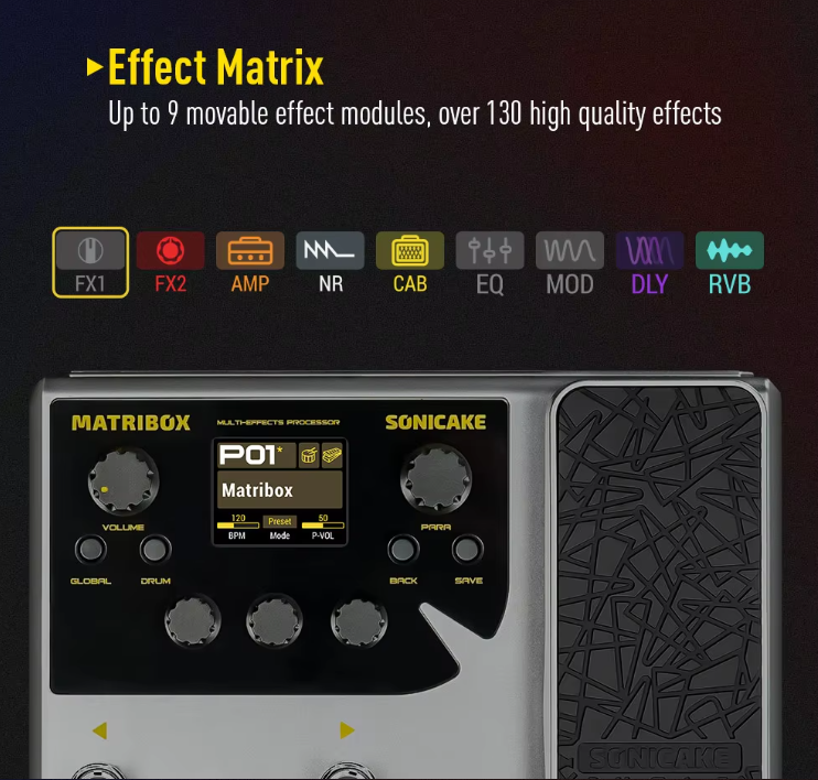 Sonicake Matribox 140 Built-in Guitar/Bass/Acoustic Multi Effects Processor with Expression pedal Looper Modeling AMP QME-50 - A