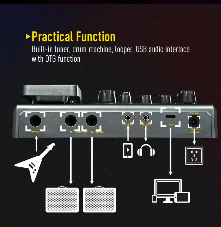 - 다기능성: 다양한 이펙트를 한 기기에서 사용할 수 있어, 장비를 간소화할 수 있습니다.