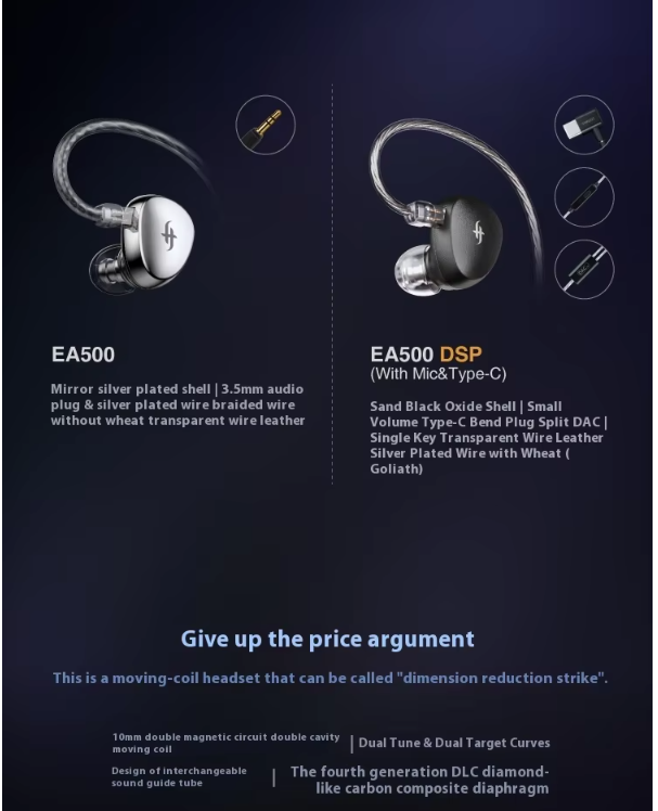 SIMGOT EA500 DSP Wired Earphones With Mic Dual-Magnetic-Circuit Dual-Cavity HiFi Stereo Music Headphone Custom Gaming Earbuds -