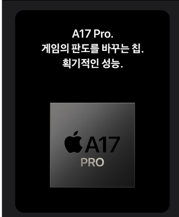 - 차세대 프로세서: A17 바이오닉 칩은 업계를 선도하는 성능을 제공하며, 향상된 에너지 효율성으로 더 긴 배터리 수명을 보장합니다.
