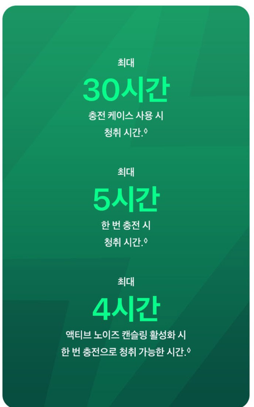 - 배터리 수명: 최대 6시간/케이스 사용 시 최대 24시간+