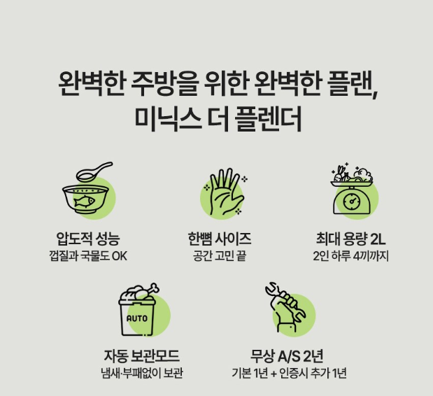 - 크기 및 무게: 주방 공간에 적합한 컴팩트한 디자인