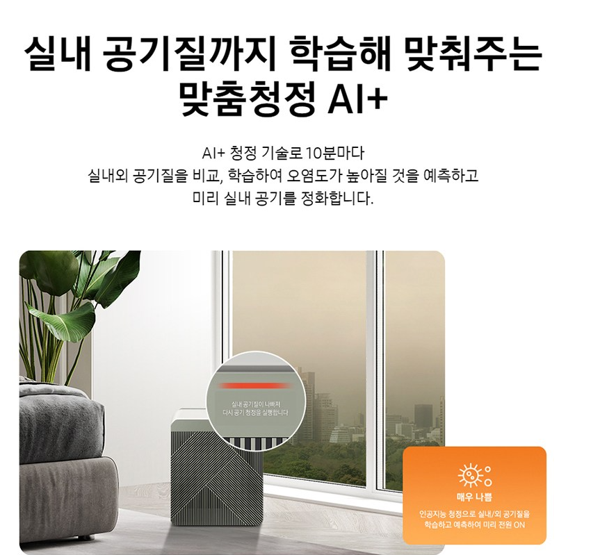 실내 공기 질을 자동으로 분석하여 최적의 모드로 운전하는 AI 기능이 적용되었습니다.