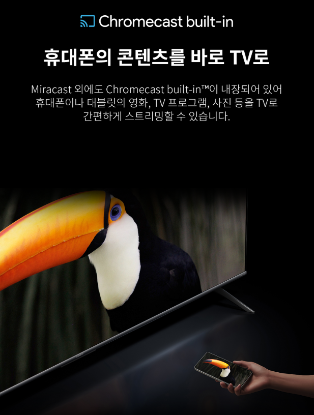 ✅ 크롬캐스트 내장 – 스마트폰 화면 미러링 지원