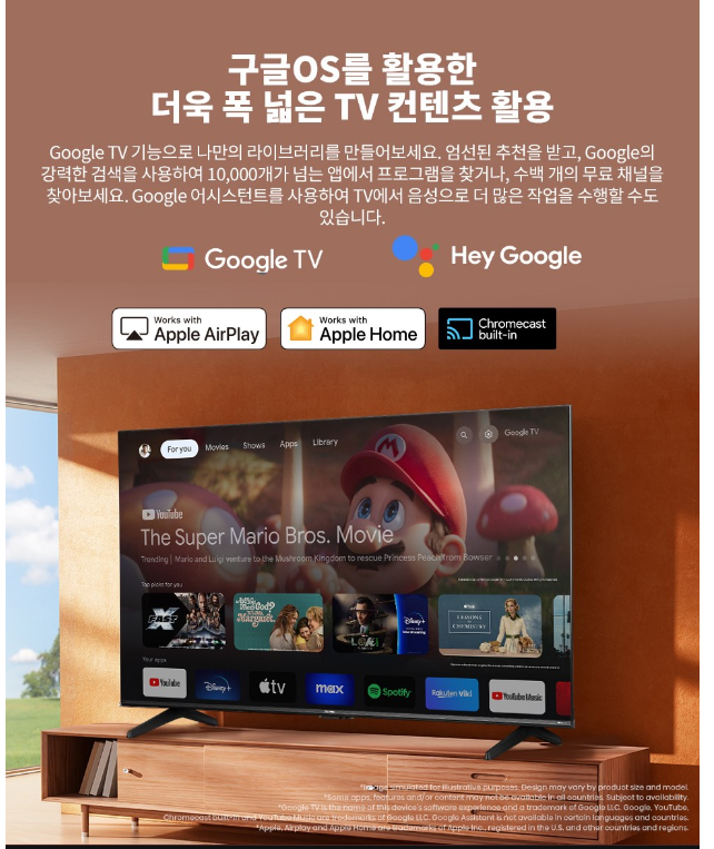 🔹 구글 안드로이드 TV OS 탑재 – 다양한 앱 설치 가능