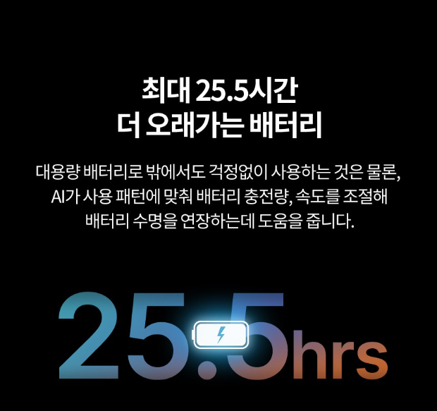 4️⃣ 배터리 – 최대 20시간, 하루 종일 사용 가능