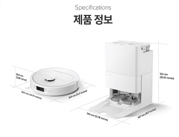 ✅ 도킹 스테이션 디자인: 먼지 자동 비움 기능이 내장된 깔끔한 형태