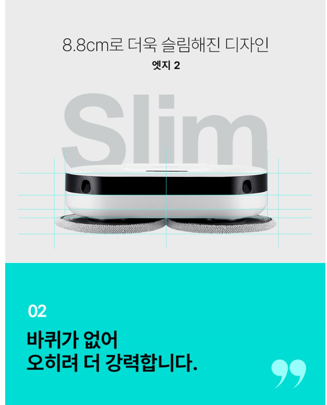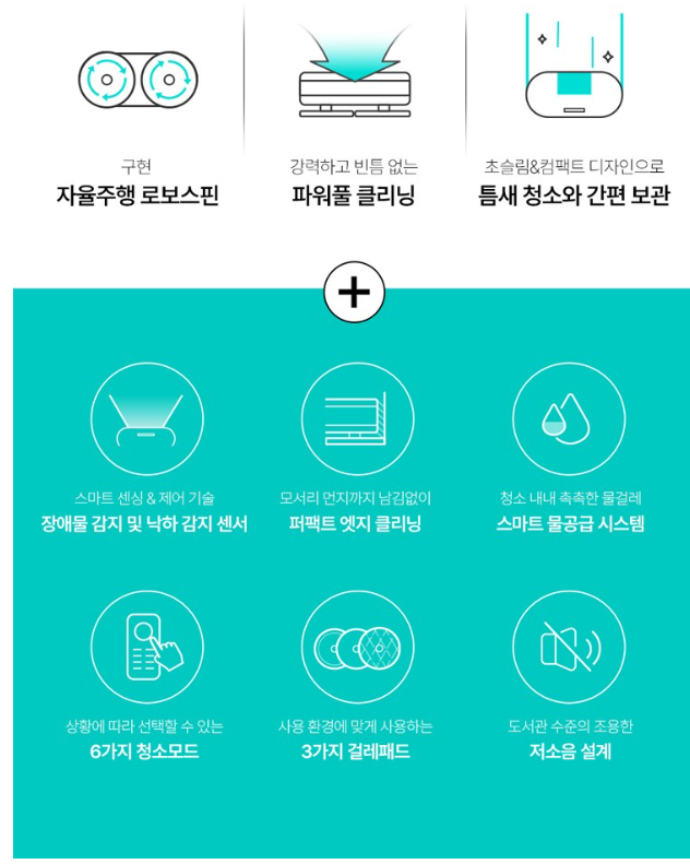 - 기존 로봇청소기보다 벽과 모서리까지 더욱 깨끗하게 관리할 수 있습니다.