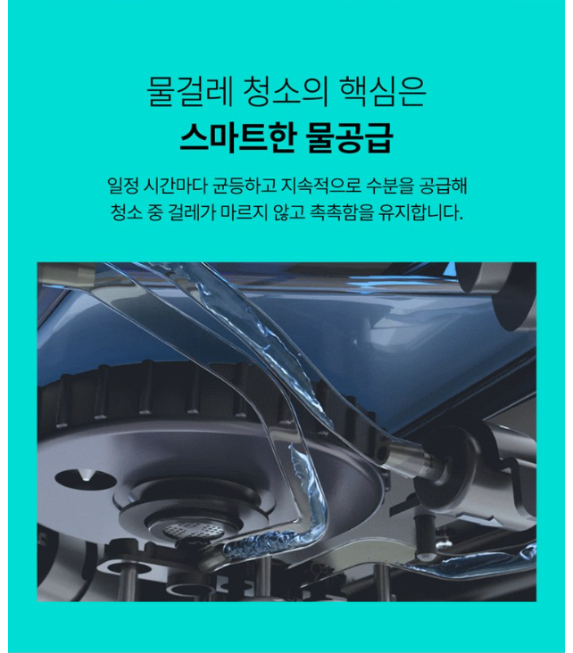 - 물걸레 청소 시 가장 중요한 물 공급이 자동으로 이루어져 번거로움을 줄여줍니다.