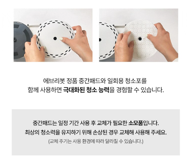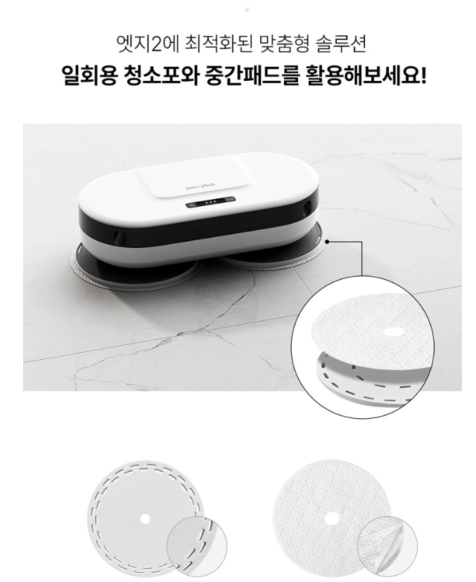 - 물걸레 전용 제품이므로 먼지 흡입 기능이 필요하다면 별도의 로봇청소기가 필요할 수 있습니다.