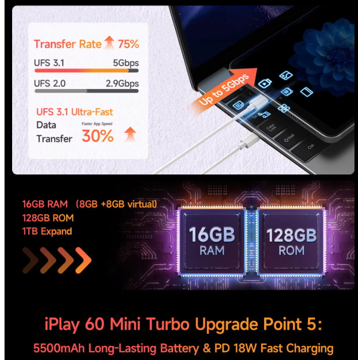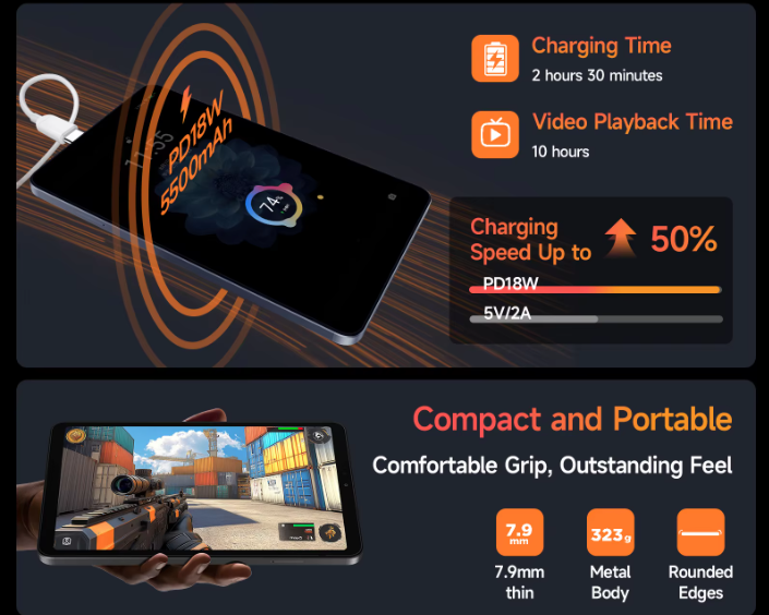 Alldocube iPlay60 Mini Turbo의 배터리 용량은 명확하게 표기되지 않았지만,