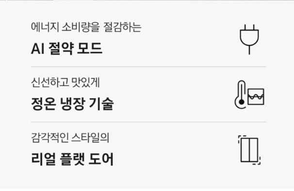 ❌ 자동 정수기 및 얼음 디스펜서 미탑재 → 해당 기능이 필요한 경우 상위 모델 고려 필요