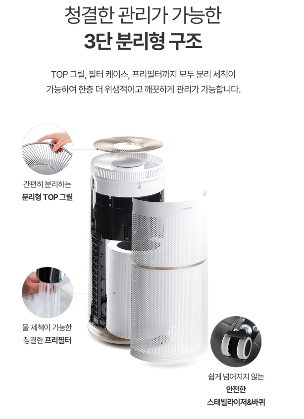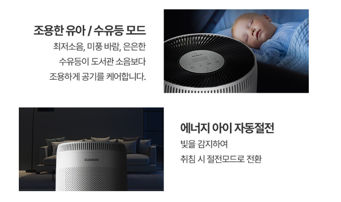 쿠쿠는 이미 정수기, 밥솥 등 위생 가전으로 입증된 브랜드이죠. 공기청정기 역시 마찬가지입니다.