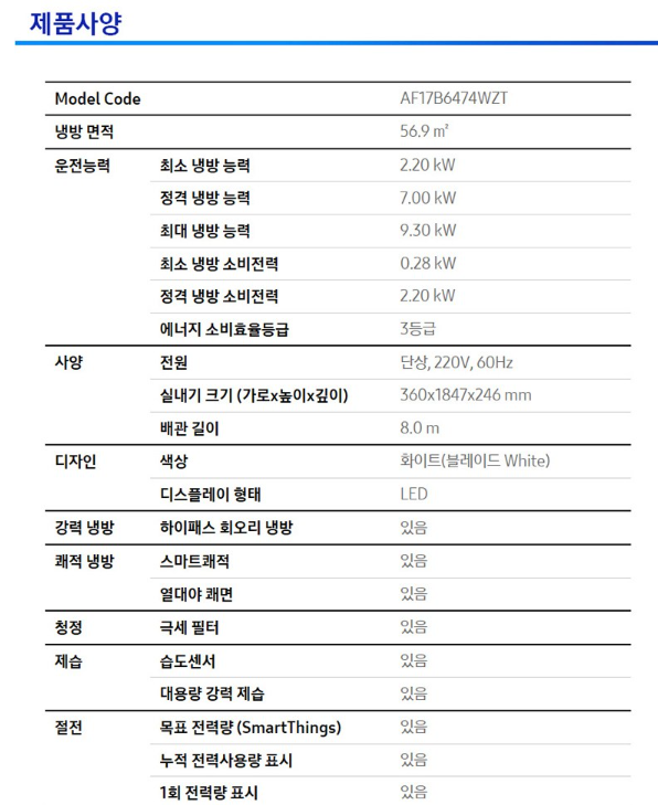 - 17평형~20평형 공간에 최적화된 고성능 에어컨을 찾는 분