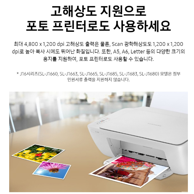 단순히 인쇄만 되는 프린터는 이제 구식! SL-J1680은 인쇄, 스캔, 복사를 모두 지원하는 복합기입니다. 삼성전자답게 기본기도 탄탄하고, 사용자 편의성을 고려한 기능도 눈에 띕니다.