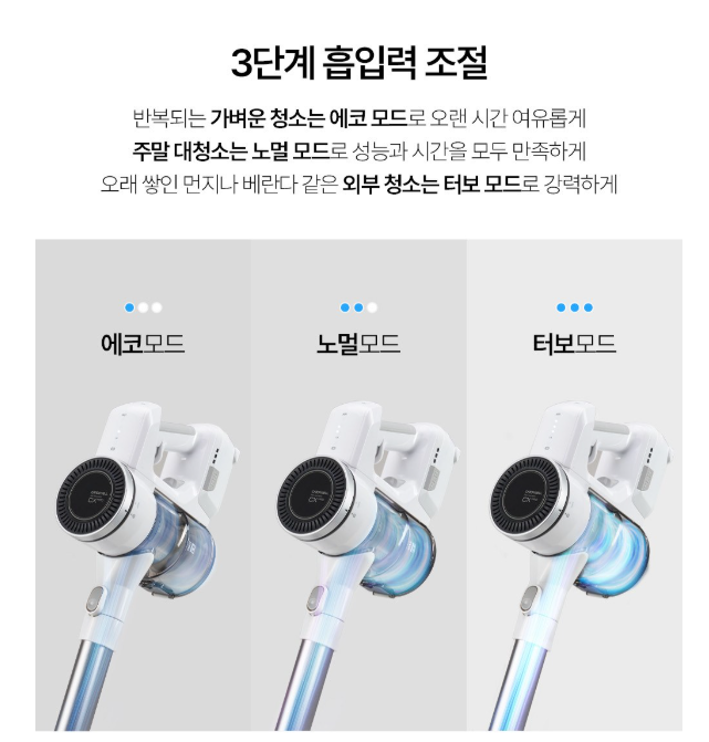 - 기타 기능: LED 헤드램프 / 브러시 3종 기본 제공 / 이중 싸이클론 시스템