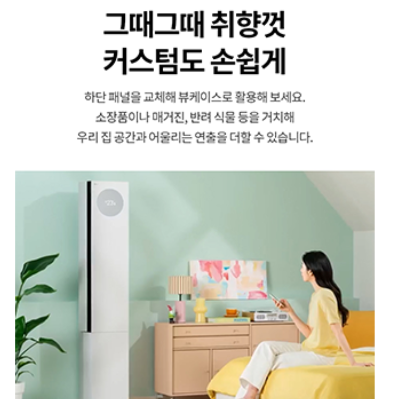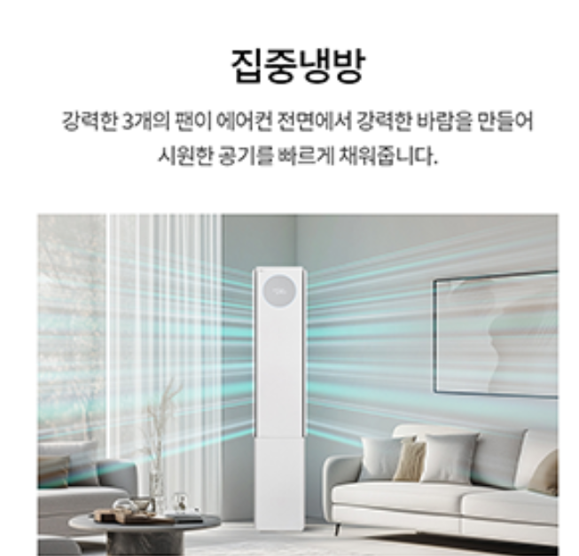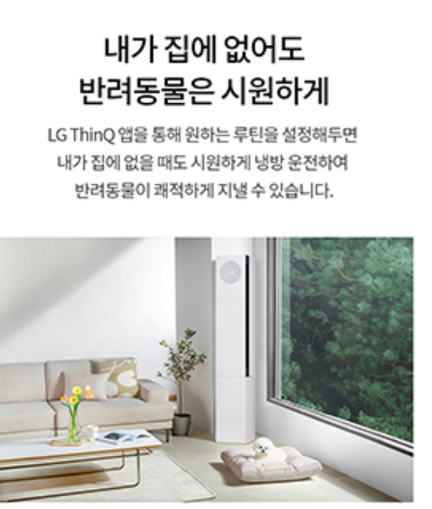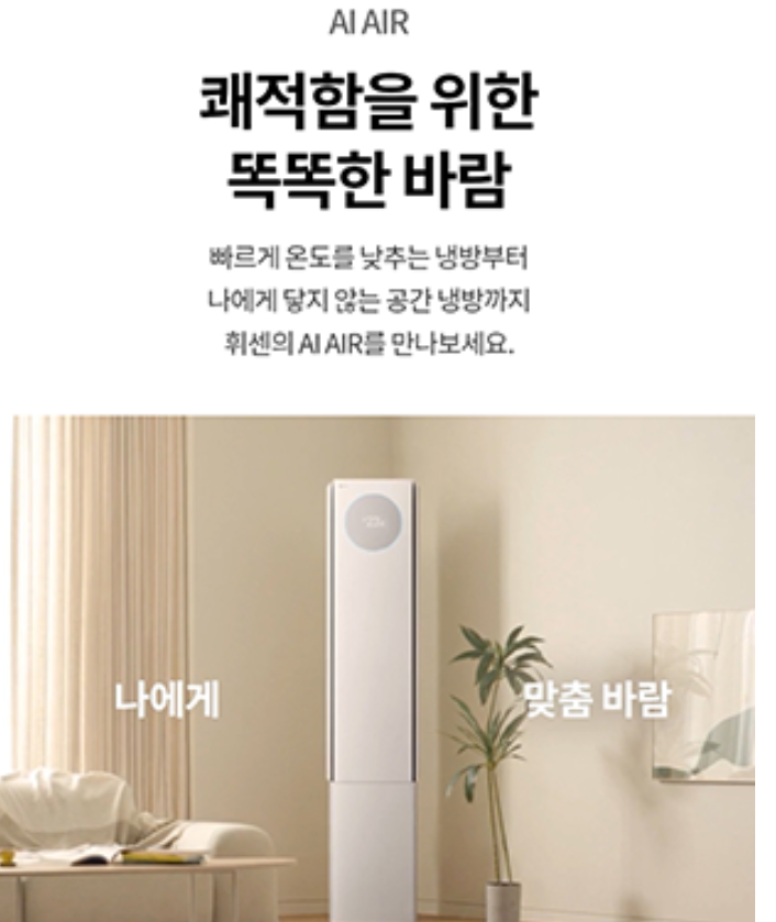 - 스마트 기능: AI 공간 감지 냉방, LG ThinQ 연동, 공기청정기능 포함