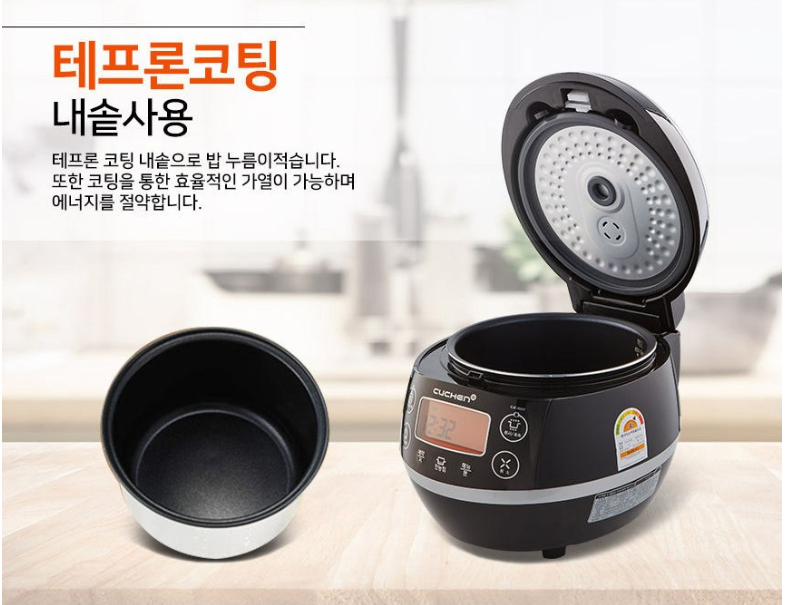 밥솥에서 가장 중요한 부품 중 하나인 내솥! 쿠첸은 테프론 코팅 처리를 통해 밥이 눌어붙는 걸 방지하고, 세척까지 쉽게 만들었습니다. 또한 열전도율이 뛰어나 빠른 취사와 에너지 절약까지 가능합니다.
