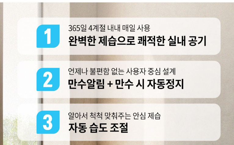 ✔ 자동 습도 조절, 연속배수, 차일드락 등 똑똑한 기능까지 탑재된