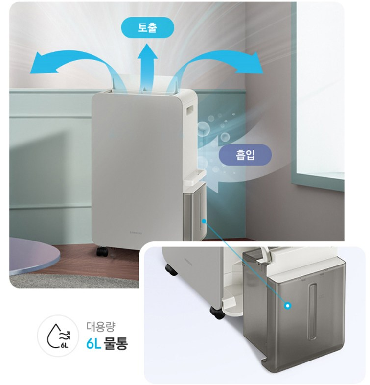 - 6L 물통 탑재로 자주 비우지 않아도 되고