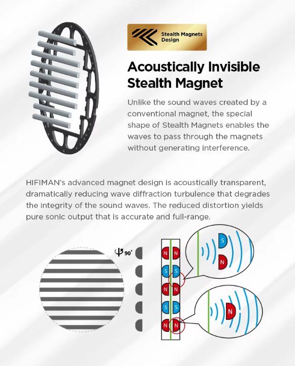 스텔스 자석 기술: Edition XS는 HIFIMAN의 최신 스텔스 자석 설계를 채택했습니다. 이 기술은 자석 구조를 공기 흐름을 방해하지 않도록 설계하여 왜곡을 줄이고, 소리의 선명도와 자연스러움을 개선합니다. 특히, 고음역과 저음역 모두에서 더욱 깨끗하고 정확한 사운드를 제공합니다.